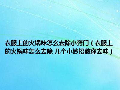 目前大家应该是对衣服上的火锅味怎么去除 几个小妙招教你去味比较感兴趣的,所以今天小编CC就来为大家整理了一些关于衣服上的火锅味怎么去除 几个小妙招教你去味方面的相关知识来分享给大家,希望大家会喜欢哦。