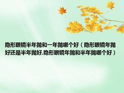 目前大家应该是对隐形眼镜年抛好还是半年抛好,隐形眼镜年抛和半年抛哪个好比较感兴趣的,所以今天小编CC就来为大家整理了一些关于隐形眼镜年抛好还是半年抛好,隐形眼镜年抛和半年抛哪个好方面的相关知识来分享给大家,希望大家会喜欢哦。