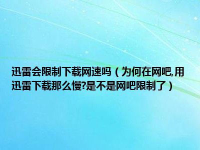相信目前很多小伙伴对于为何在网吧,用迅雷下载那么慢?是不是网吧限制了都比较感兴趣,那么小编今天在网上也是收集了一些与为何在网吧,用迅雷下载那么慢?是不是网吧限制了相关的信息来分享给大家,希望能够帮助到大家哦。