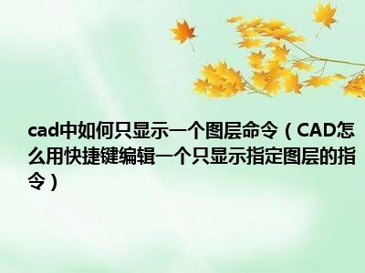 相信目前很多小伙伴对于CAD怎么用快捷键编辑一个只显示指定图层的指令都比较感兴趣,那么小编今天在网上也是收集了一些与CAD怎么用快捷键编辑一个只显示指定图层的指令相关的信息来分享给大家,希望能够帮助到大家哦。