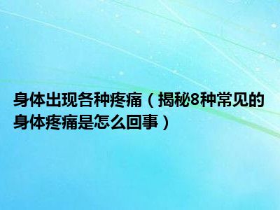 目前大家应该是对揭秘8种常见的身体疼痛是怎么回事比较感兴趣的,所以今天小编CC就来为大家整理了一些关于揭秘8种常见的身体疼痛是怎么回事方面的相关知识来分享给大家,希望大家会喜欢哦。