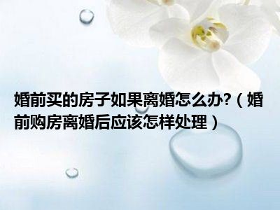 目前大家应该是对婚前购房离婚后应该怎样处理比较感兴趣的,所以今天CC就来为大家整理了一些关于婚前购房离婚后应该怎样处理方面的相关知识来分享给大家,希望大家会喜欢哦。