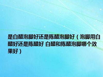 目前大家应该是对泡脚用白醋好还是陈醋好 白醋和陈醋泡脚哪个效果好比较感兴趣的,所以今天小编CC就来为大家整理了一些关于泡脚用白醋好还是陈醋好 白醋和陈醋泡脚哪个效果好方面的相关知识来分享给大家,希望大家会喜欢哦。