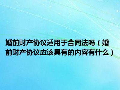 目前大家应该是对婚前财产协议应该具有的内容有什么比较感兴趣的,所以今天CC就来为大家整理了一些关于婚前财产协议应该具有的内容有什么方面的相关知识来分享给大家,希望大家会喜欢哦。