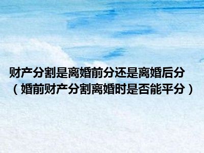 目前大家应该是对婚前财产分割,离婚时是否能平分比较感兴趣的,所以今天CC就来为大家整理了一些关于婚前财产分割,离婚时是否能平分方面的相关知识来分享给大家,希望大家会喜欢哦。