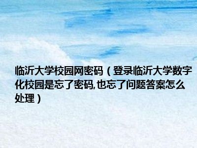 相信目前很多小伙伴对于登录临沂大学数字化校园是忘了密码,也忘了问题答案怎么处理都比较感兴趣,那么小编今天在网上也是收集了一些与登录临沂大学数字化校园是忘了密码,也忘了问题答案怎么处理相关的信息来分享给大家,希望能够帮助到大家哦。