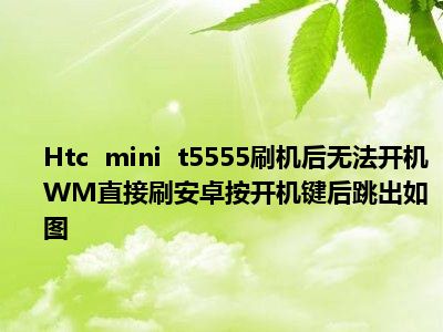 相信目前很多小伙伴对于htc hd mini t5555刷机后开不了机 是WM直刷android 按开机键后跳出来如图都比较感兴趣,那么小编今天在网上也是收集了一些与htc hd mini t5555刷机后开不了机 是WM直刷android 按开机键后跳出来如图相关的信息来分享给大家,希望能够帮助到大家哦。