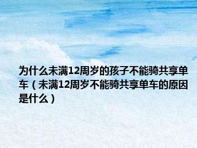 目前大家应该是对未满12周岁不能骑共享单车的原因是什么比较感兴趣的,所以今天CC就来为大家整理了一些关于未满12周岁不能骑共享单车的原因是什么方面的相关知识来分享给大家,希望大家会喜欢哦。