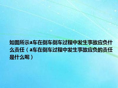 导读目前大家应该是对a车在倒车过程中发生事故应负的责任是什么呢比较感兴趣的,所以今天CC就来为大家整理了一些关于a车在倒车过程中发生事故应...