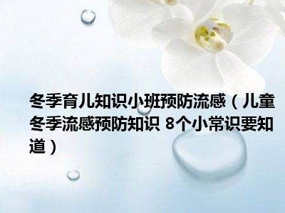 目前大家应该是对儿童冬季流感预防知识 8个小常识要知道比较感兴趣的,所以今天小编CC就来为大家整理了一些关于儿童冬季流感预防知识 8个小常识要知道方面的相关知识来分享给大家,希望大家会喜欢哦。