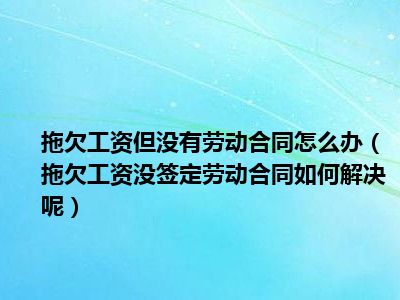目前大家应该是对拖欠工资,没签定劳动合同如何解决呢比较感兴趣的,所以今天CC就来为大家整理了一些关于拖欠工资,没签定劳动合同如何解决呢方面的相关知识来分享给大家,希望大家会喜欢哦。