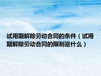 目前大家应该是对试用期解除劳动合同的限制是什么比较感兴趣的,所以今天CC就来为大家整理了一些关于试用期解除劳动合同的限制是什么方面的相关知识来分享给大家,希望大家会喜欢哦。