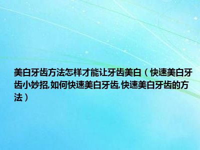 目前大家应该是对快速美白牙齿小妙招,如何快速美白牙齿,快速美白牙齿的方法比较感兴趣的,所以今天小编CC就来为大家整理了一些关于快速美白牙齿小妙招,如何快速美白牙齿,快速美白牙齿的方法方面的相关知识来分享给大家,希望大家会喜欢哦。