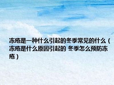 目前大家应该是对冻疮是什么原因引起的 冬季怎么预防冻疮比较感兴趣的,所以今天小编CC就来为大家整理了一些关于冻疮是什么原因引起的 冬季怎么预防冻疮方面的相关知识来分享给大家,希望大家会喜欢哦。