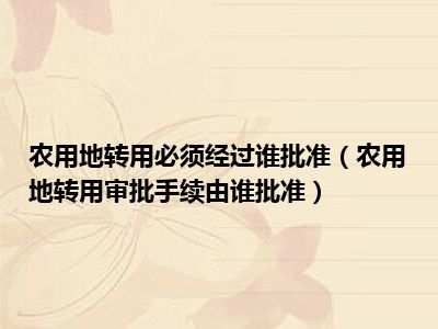 目前大家应该是对农用地转用审批手续由谁批准比较感兴趣的,所以今天CC就来为大家整理了一些关于农用地转用审批手续由谁批准方面的相关知识来分享给大家,希望大家会喜欢哦。