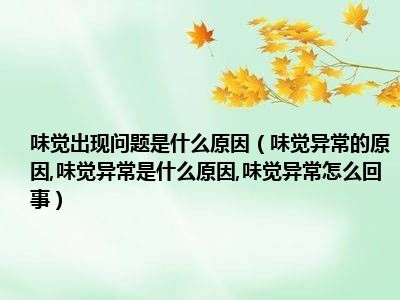 目前大家应该是对味觉异常的原因,味觉异常是什么原因,味觉异常怎么回事比较感兴趣的,所以今天小编CC就来为大家整理了一些关于味觉异常的原因,味觉异常是什么原因,味觉异常怎么回事方面的相关知识来分享给大家,希望大家会喜欢哦。
