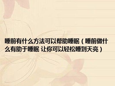 目前大家应该是对睡前做什么有助于睡眠 让你可以轻松睡到天亮比较感兴趣的,所以今天小编CC就来为大家整理了一些关于睡前做什么有助于睡眠 让你可以轻松睡到天亮方面的相关知识来分享给大家,希望大家会喜欢哦。