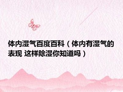 目前大家应该是对体内有湿气的表现 这样除湿你知道吗比较感兴趣的,所以今天小编CC就来为大家整理了一些关于体内有湿气的表现 这样除湿你知道吗方面的相关知识来分享给大家,希望大家会喜欢哦。