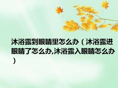 目前大家应该是对沐浴露进眼睛了怎么办,沐浴露入眼睛怎么办比较感兴趣的,所以今天小编CC就来为大家整理了一些关于沐浴露进眼睛了怎么办,沐浴露入眼睛怎么办方面的相关知识来分享给大家,希望大家会喜欢哦。