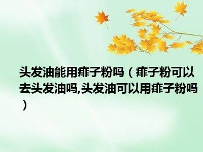 目前大家应该是对痱子粉可以去头发油吗,头发油可以用痱子粉吗比较感兴趣的,所以今天小编CC就来为大家整理了一些关于痱子粉可以去头发油吗,头发油可以用痱子粉吗方面的相关知识来分享给大家,希望大家会喜欢哦。
