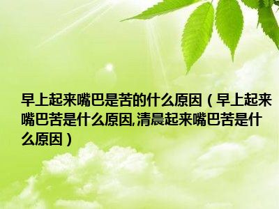 目前大家应该是对早上起来嘴巴苦是什么原因,清晨起来嘴巴苦是什么原因比较感兴趣的,所以今天小编CC就来为大家整理了一些关于早上起来嘴巴苦是什么原因,清晨起来嘴巴苦是什么原因方面的相关知识来分享给大家,希望大家会喜欢哦。