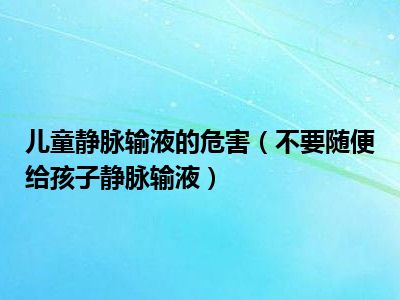 目前大家应该是对不要随便给孩子静脉输液比较感兴趣的,所以今天小编CC就来为大家整理了一些关于不要随便给孩子静脉输液方面的相关知识来分享给大家,希望大家会喜欢哦。