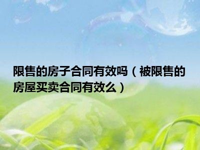 目前大家应该是对被限售的房屋买卖合同有效么比较感兴趣的,所以今天CC就来为大家整理了一些关于被限售的房屋买卖合同有效么方面的相关知识来分享给大家,希望大家会喜欢哦。