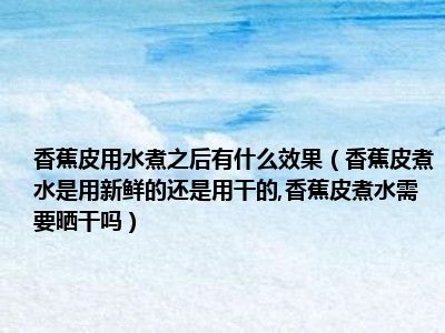 目前大家应该是对香蕉皮煮水是用新鲜的还是用干的,香蕉皮煮水需要晒干吗比较感兴趣的,所以今天小编CC就来为大家整理了一些关于香蕉皮煮水是用新鲜的还是用干的,香蕉皮煮水需要晒干吗方面的相关知识来分享给大家,希望大家会喜欢哦。