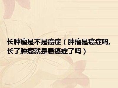 导读目前大家应该是对肿瘤是癌症吗,长了肿瘤就是患癌症了吗比较感兴趣的,所以今天小编CC就来为大家整理了一些关于肿瘤是癌症吗,长了肿瘤就是患...