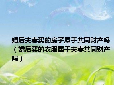 目前大家应该是对婚后买的衣服属于夫妻共同财产吗比较感兴趣的,所以今天CC就来为大家整理了一些关于婚后买的衣服属于夫妻共同财产吗方面的相关知识来分享给大家,希望大家会喜欢哦。