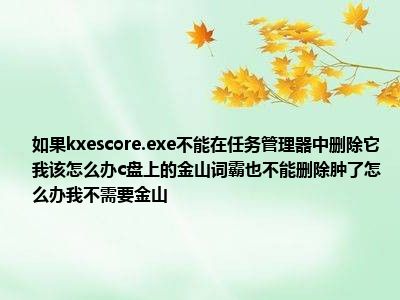 相信目前很多小伙伴对于kxescore.exe在任务管理器删不掉怎么处理?在c盘的kingsoft也删不掉,肿么办呢,我不用金山毒霸都比较感兴趣,那么小编今天在网上也是收集了一些与kxescore.exe在任务管理器删不掉怎么处理?在c盘的kingsoft也删不掉,肿么办呢,我不用金山毒霸相关的信息来分享给大家,希望能够帮助到大家哦。