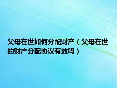 目前大家应该是对父母在世的财产分配协议有效吗比较感兴趣的,所以今天CC就来为大家整理了一些关于父母在世的财产分配协议有效吗方面的相关知识来分享给大家,希望大家会喜欢哦。