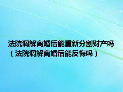 目前大家应该是对法院调解离婚后能反悔吗比较感兴趣的,所以今天CC就来为大家整理了一些关于法院调解离婚后能反悔吗方面的相关知识来分享给大家,希望大家会喜欢哦。