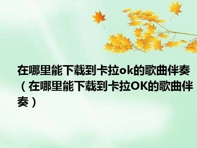 相信目前很多小伙伴对于在哪里能下载到卡拉OK的歌曲伴奏都比较感兴趣,那么小编今天在网上也是收集了一些与在哪里能下载到卡拉OK的歌曲伴奏相关的信息来分享给大家,希望能够帮助到大家哦。