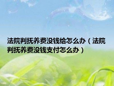 目前大家应该是对法院判抚养费没钱支付怎么办比较感兴趣的,所以今天CC就来为大家整理了一些关于法院判抚养费没钱支付怎么办方面的相关知识来分享给大家,希望大家会喜欢哦。