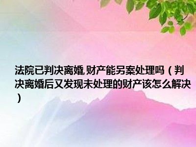 目前大家应该是对判决离婚后又发现未处理的财产该怎么解决比较感兴趣的,所以今天CC就来为大家整理了一些关于判决离婚后又发现未处理的财产该怎么解决方面的相关知识来分享给大家,希望大家会喜欢哦。