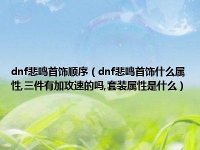 相信目前很多小伙伴对于dnf悲鸣首饰什么属性,三件有加攻速的吗,套装属性是什么都比较感兴趣,那么小编今天在网上也是收集了一些与dnf悲鸣首饰什么属性,三件有加攻速的吗,套装属性是什么相关的信息来分享给大家,希望能够帮助到大家哦。