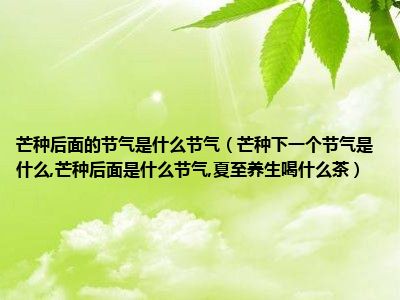 目前大家应该是对芒种下一个节气是什么,芒种后面是什么节气,夏至养生喝什么茶比较感兴趣的,所以今天小编CC就来为大家整理了一些关于芒种下一个节气是什么,芒种后面是什么节气,夏至养生喝什么茶方面的相关知识来分享给大家,希望大家会喜欢哦。