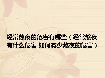目前大家应该是对经常熬夜有什么危害 如何减少熬夜的危害比较感兴趣的,所以今天小编CC就来为大家整理了一些关于经常熬夜有什么危害 如何减少熬夜的危害方面的相关知识来分享给大家,希望大家会喜欢哦。