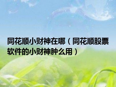 相信目前很多小伙伴对于同花顺股票软件的小财神肿么用都比较感兴趣,那么小编今天在网上也是收集了一些与同花顺股票软件的小财神肿么用相关的信息来分享给大家,希望能够帮助到大家哦。