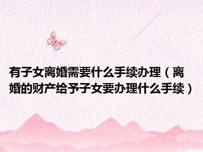 目前大家应该是对离婚的财产给予子女要办理什么手续比较感兴趣的,所以今天CC就来为大家整理了一些关于离婚的财产给予子女要办理什么手续方面的相关知识来分享给大家,希望大家会喜欢哦。