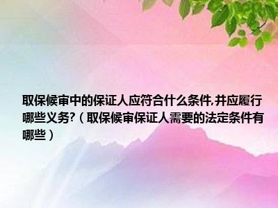 导读目前大家应该是对取保候审保证人需要的法定条件有哪些比较感兴趣的,所以今天CC就来为大家整理了一些关于取保候审保证人需要的法定条件有哪...
