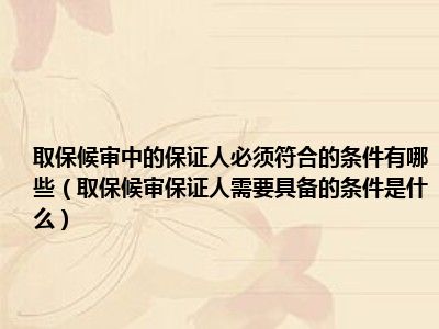 目前大家应该是对取保候审保证人需要具备的条件是什么比较感兴趣的,所以今天CC就来为大家整理了一些关于取保候审保证人需要具备的条件是什么方面的相关知识来分享给大家,希望大家会喜欢哦。