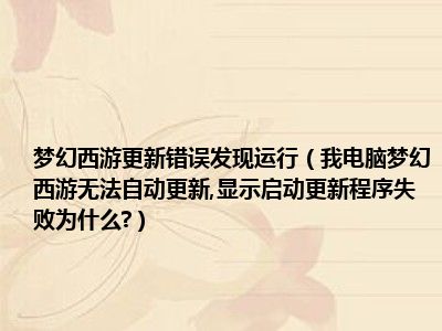 相信目前很多小伙伴对于我电脑梦幻西游无法自动更新,显示启动更新程序失败。为什么?都比较感兴趣,那么小编今天在网上也是收集了一些与我电脑梦幻西游无法自动更新,显示启动更新程序失败。为什么?相关的信息来分享给大家,希望能够帮助到大家哦。