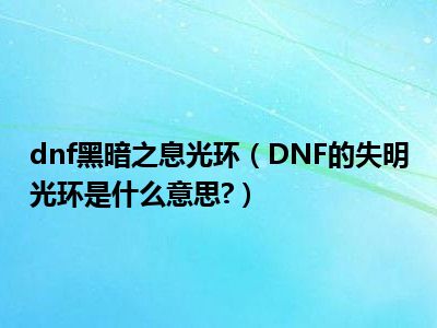 相信目前很多小伙伴对于DNF的失明光环是什么意思?都比较感兴趣,那么小编今天在网上也是收集了一些与DNF的失明光环是什么意思?相关的信息来分享给大家,希望能够帮助到大家哦。
