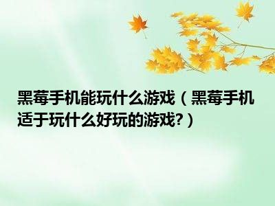 相信目前很多小伙伴对于黑莓手机适于玩什么好玩的游戏?都比较感兴趣,那么小编今天在网上也是收集了一些与黑莓手机适于玩什么好玩的游戏?相关的信息来分享给大家,希望能够帮助到大家哦。