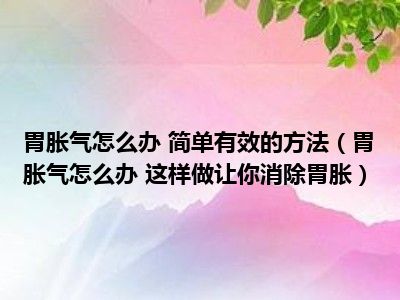 目前大家应该是对胃胀气怎么办 这样做让你消除胃胀比较感兴趣的,所以今天小编CC就来为大家整理了一些关于胃胀气怎么办 这样做让你消除胃胀方面的相关知识来分享给大家,希望大家会喜欢哦。