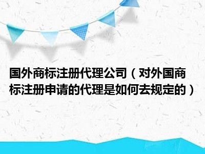 目前大家应该是对对外国商标注册申请的代理是如何去规定的比较感兴趣的,所以今天CC就来为大家整理了一些关于对外国商标注册申请的代理是如何去规定的方面的相关知识来分享给大家,希望大家会喜欢哦。