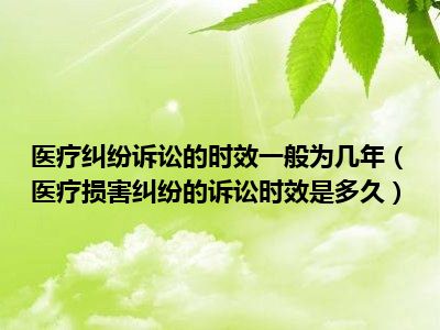 目前大家应该是对医疗损害纠纷的诉讼时效是多久比较感兴趣的,所以今天CC就来为大家整理了一些关于医疗损害纠纷的诉讼时效是多久方面的相关知识来分享给大家,希望大家会喜欢哦。