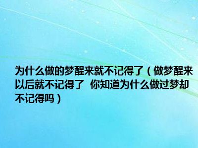 目前大家应该是对做梦醒来以后就不记得了 你知道为什么做过梦却不记得吗比较感兴趣的,所以今天小编CC就来为大家整理了一些关于做梦醒来以后就不记得了 你知道为什么做过梦却不记得吗方面的相关知识来分享给大家,希望大家会喜欢哦。